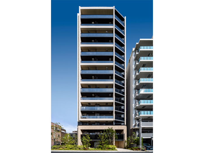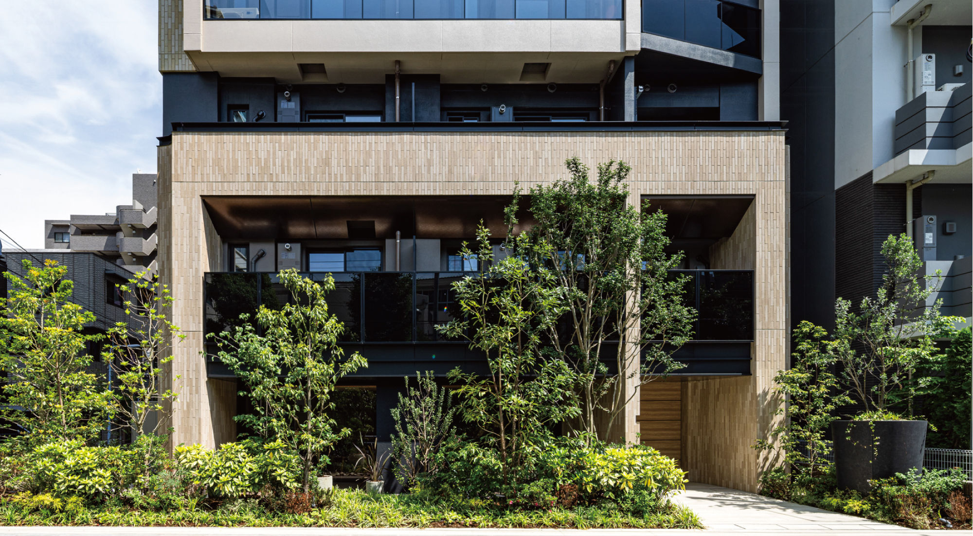 蔵前の歴史的な街並みと現代的な感性を融合させた集合住宅である。伝統と現代性が調和する街の魅力を住空間に取り入れ、建築と都市が連続性を持ってつながる構成が特徴的である。外構には、鉢植えや地植えを組み合わせた庭のようなデザインを採用し、街の風景と住まいの境界を曖昧にする工夫が施されている。ファサードには、ブリックタイルや槌目調の金属パネルなど、手仕事の温もりを感じさせる素材を用い、蔵前らしい「粋」を表現している。共用部は、閉鎖的な作業空間ではなく、庭と一体化したラウンジや眺望を活かした屋上テラスなど、開放感のある設計がなされている。住戸内には、フレキシブルなキッチンやスマートボックスなど、現代の多様なライフスタイルに対応した設備を導入しており、コンパクトながらも快適性と機能性を両立させた設計は、単身者やDINKs世代にとって使い勝手の良い住環境を提供している。街の記憶を尊重しながらも、新しい生活価値を提案するプロジェクトであり、都市型住宅の一つの方向性を示している。
