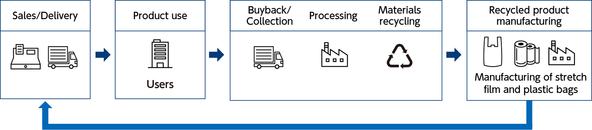Environmental regulations have been strengthened in recent years, particularly in Europe, and the use of recycled plastics has been expanding in product design and materials procurement at companies. Against this backdrop, packaging materials such as stretch film are relatively easy to collect in good condition after use and have characteristics that make them suitable for recycling. However, establishing collection and recycling as a sustainable business requires certain systems and expertise. In the logistics industry, pallet transportation has been expanding amid labor shortages, and demand for recycled materials is expected to increase further alongside growing demand for packaging materials.